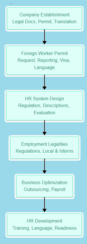 We provide comprehensive outsourcing services for manufacturing, logistics, hospitality, and workforce management.